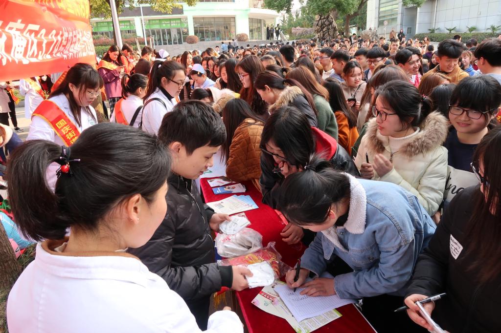 讲座结束后,在校园内开展了隆重的签名仪式,各系、医学院、技工部学生积极参与其中,同学们在印有“共同关注结核,控制从我做起”的横幅上郑重的签上自己的名字。由田家庵区疾病预防控制中心、洞山街道社区卫生服务中心、国庆街道社区卫生服务中心、公园街道社区卫生服务中心15名医务工作者及我院25名学生志愿者,向过往师生发放了印有“结核病防治公益宣传”字样的口罩。