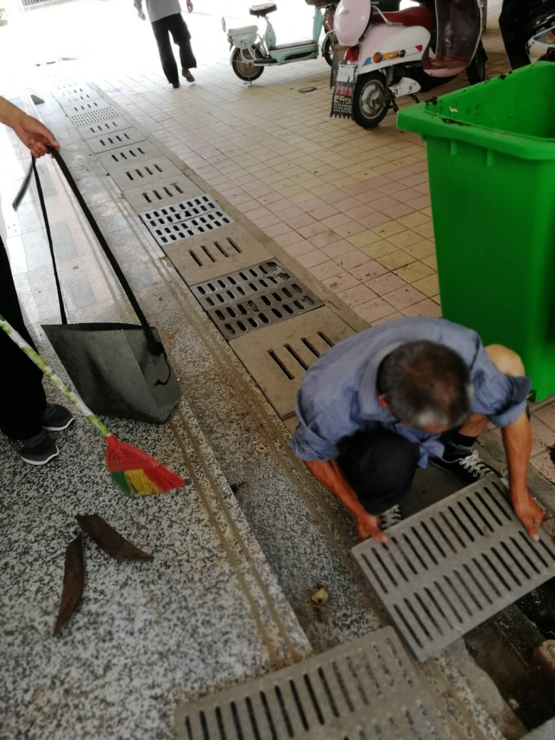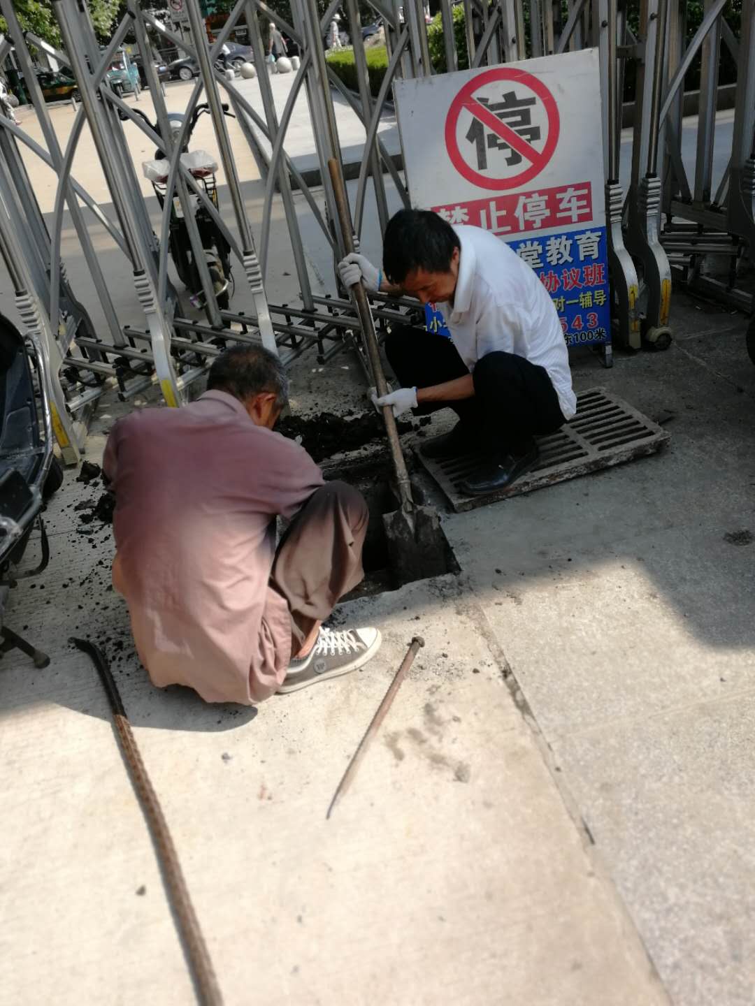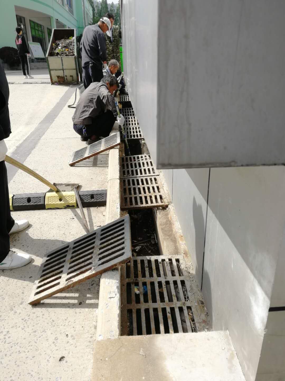 工人们不怕困难、齐心协力用撬棍把厚重的下水道盖板掀开,枯枝落叶厚厚一层,淤泥和脏物一涌而出,里面难闻的气味扑鼻而来,在场的工人没有退缩,大家用铲子、矬子等工具想方设法地掏出垃圾,然后再用垃圾车运走,清理完毕后又把脏污的路面打扫得干干净净。天气闷热、阳光暴晒,却没有听到一句抱怨、一声诉苦,在平凡的岗位上努力工作着。连续一个多星期,清理学生食堂东边及南边、系部楼前主干道东边两侧、篮球场、校园主干道东西两边、大门西边、图书馆门前等校园内所有下水道,共计清理排水沟近20条,掀开清理下水道盖板286块,清理垃圾10余桶。