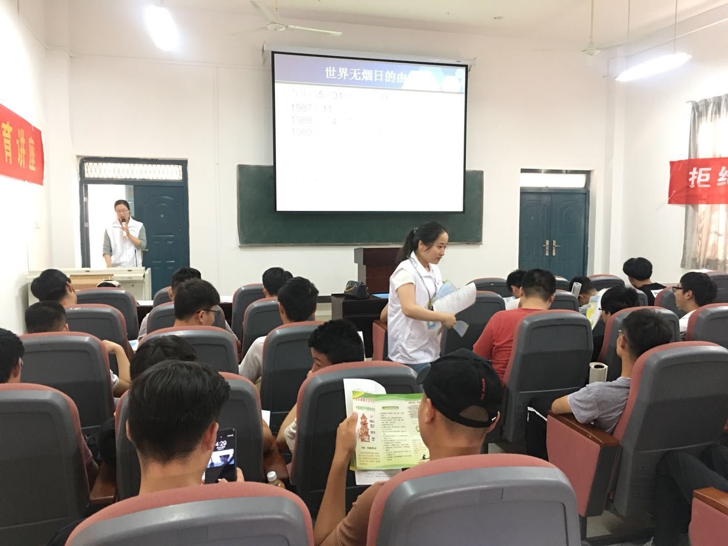 专业人员向学生介绍了烟草中的有害物质、吸烟及被动吸烟的危害、如何适量控烟及戒烟方法等知识,告知学生要远离烟草危害,减少因吸烟引发的各种疾病的发生。同时给学生发放了如何预防慢性病、健康素养66条等知识的宣传折页,并开展了有奖答题互动活动,学生们积极参与,争先抢答,讲座在热烈掌声中圆满结束。