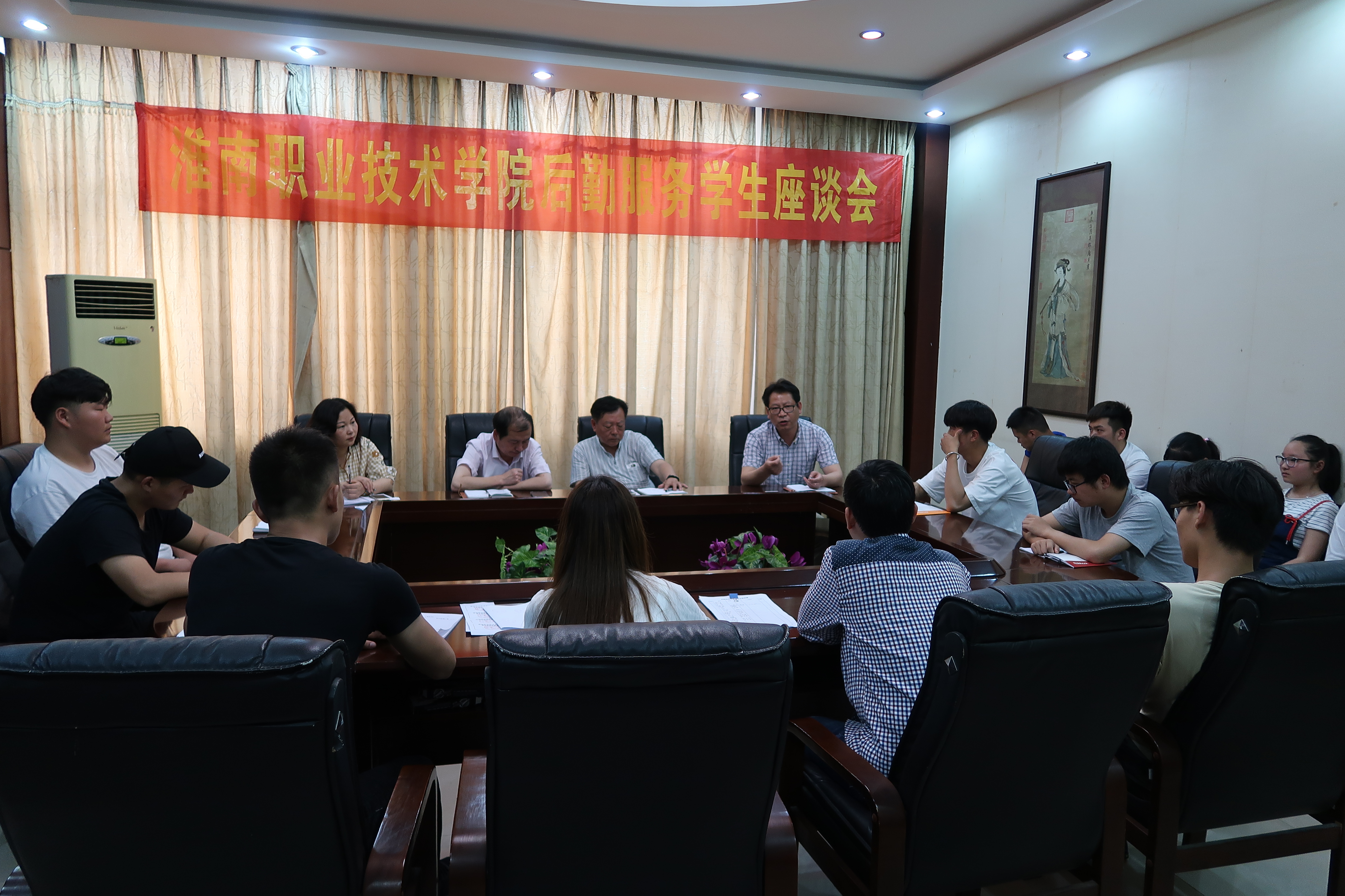 后勤集团相关部门负责人、各中心主任、督查组成员以及校团委生活部和各系、医学院学生代表参加座谈。